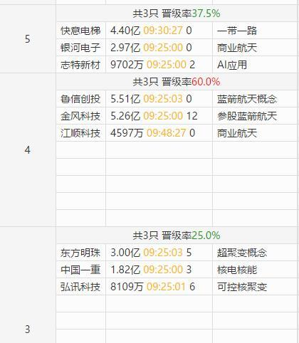 涨停晋级方面,锋龙股份晋级八连板,快意电梯、银河电子、志特新材等三股晋级5连板,鲁信创投、金风科技、江顺科技等三股晋级4连板,东方明珠、中国一重、弘讯科技等三股晋级3连板,杭萧钢构、航天电子等九股晋级2连板。