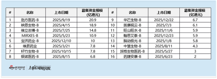 医疗保健行业合计募资205亿港元,这背后离不开18A章政策的持续赋能。2025年共有16单未盈利生物医药企业完成IPO,合计募资138亿港元,占医疗保健行业整体募资额的65%,创新生物科技企业的融资活力得到充分激发,港股作为创新医疗企业融资平台的功能进一步凸显。